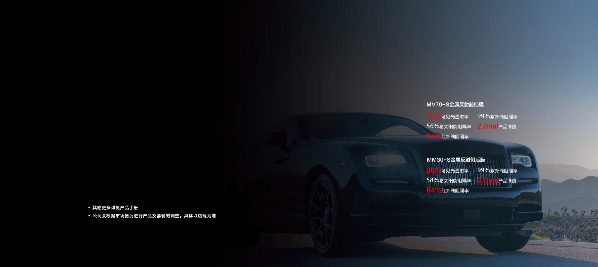 安全與隔熱共享,美化車輛外觀,同時(shí)讓玻璃的顏色和愛車的顏色相得益彰,更時(shí)尚、更高端。99%以上阻隔紫外線,保護(hù)肌膚健康與美麗。盡享尊貴盡享快樂。